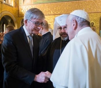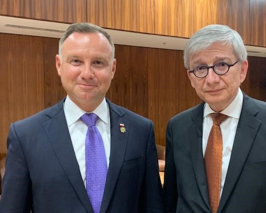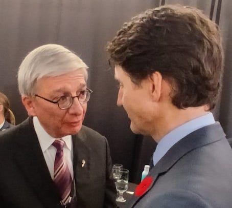 Eugene Czolij with Canadian Prime Minister Justin Trudeau (2024); with Ukrainian President Volodymyr Zelensky (2024); with Polish President Andrzej Duda (2021); with His Beatitude Sviatoslav, Head of the Ukrainian Greek Catholic Church, and His Holiness Pope Francis (2018)