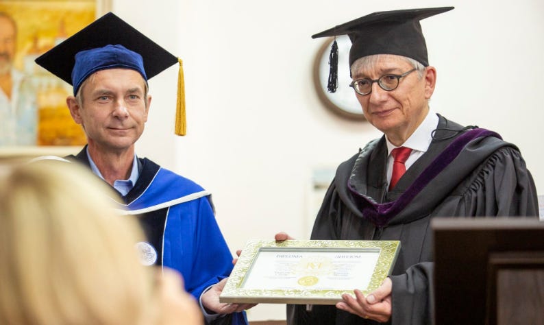 Eugene Czolij receiving an Honorary Doctorate from the National University of Kyiv-Mohyla Academy (2019)