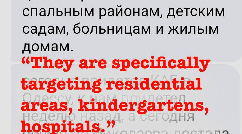 “Four shaheds [drones] landed close to us, in the village on the outskirts of Kherson where my father is staying, they landed directly on a nine-storey block of flats.”