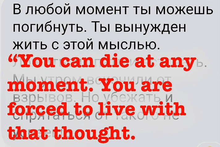 “You can die at any moment. You are forced to live with that thought. Go to bed and wake up with that thought. This morning, we woke up to these massive explosions. But you know that you cannot run and hide from something like that.”